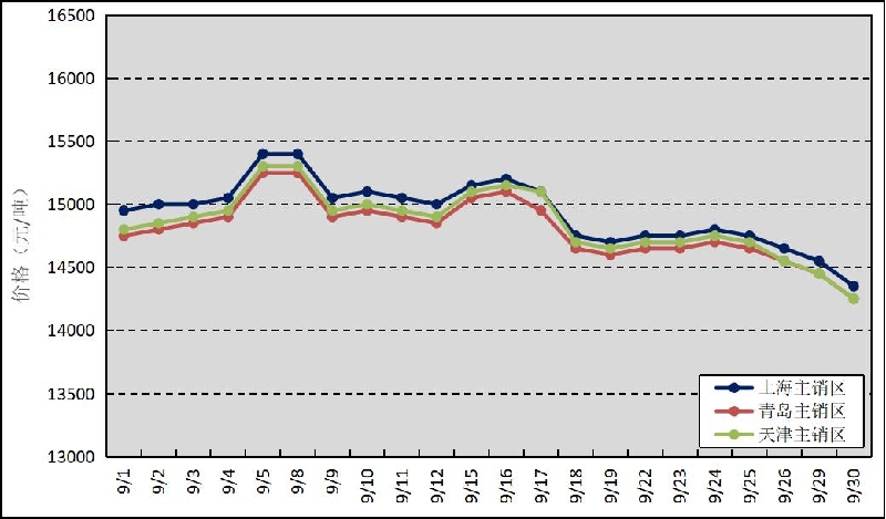 圖3 2025年9月國內(nèi)主銷區(qū)天然橡膠價(jià)格走勢(shì)