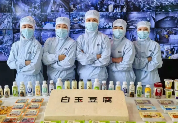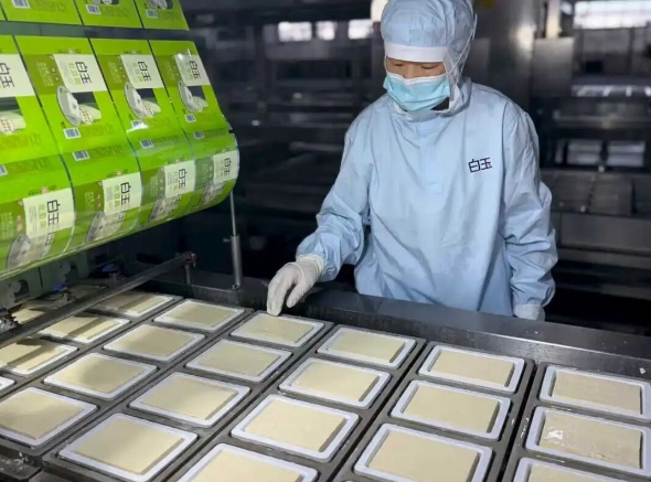 在北京,最知名的豆腐品牌當(dāng)屬“白玉”。北京白玉食品有限公司每天可生產(chǎn)近30萬盒的盒裝豆腐,北京市場商超系統(tǒng)覆蓋率達90%,并實現(xiàn)對北京各大農(nóng)貿(mào)市場的全覆蓋。從泡豆、磨漿、煮漿、點腦、壓制到成型,21道自動化工序都遵循傳統(tǒng)技藝,展現(xiàn)了“白玉”的初心與追求。