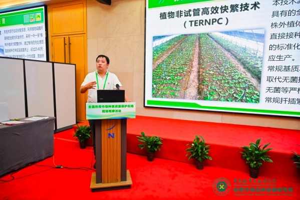北京開源創(chuàng)眾農(nóng)業(yè)科技有限公司總經(jīng)理李一澤介紹了植物非試管快繁技術(shù)的特點(diǎn)和工作流程,并闡述了其在熱作種質(zhì)資源保護(hù)與利用中的作用。