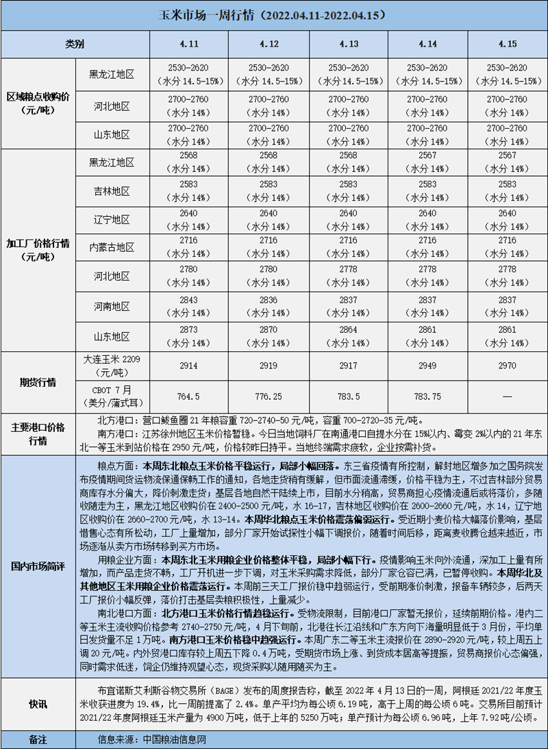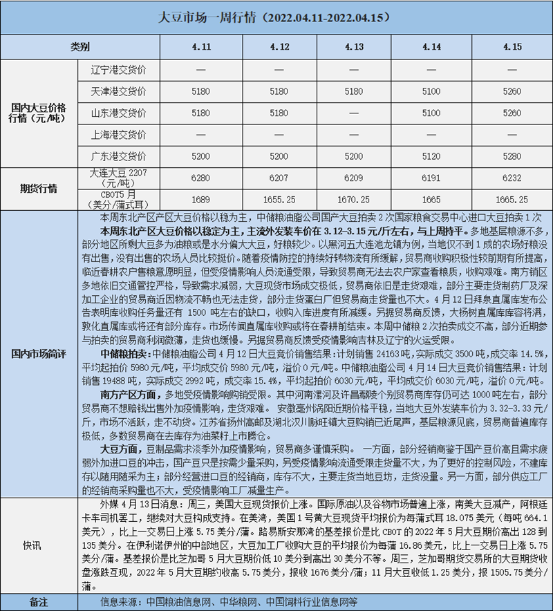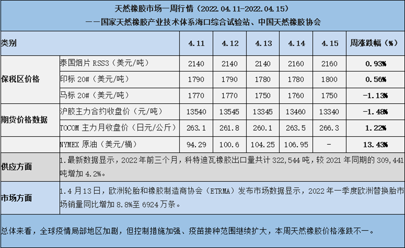 天然橡膠、大豆、玉米市場一周行情(2022.04.11-04.15)